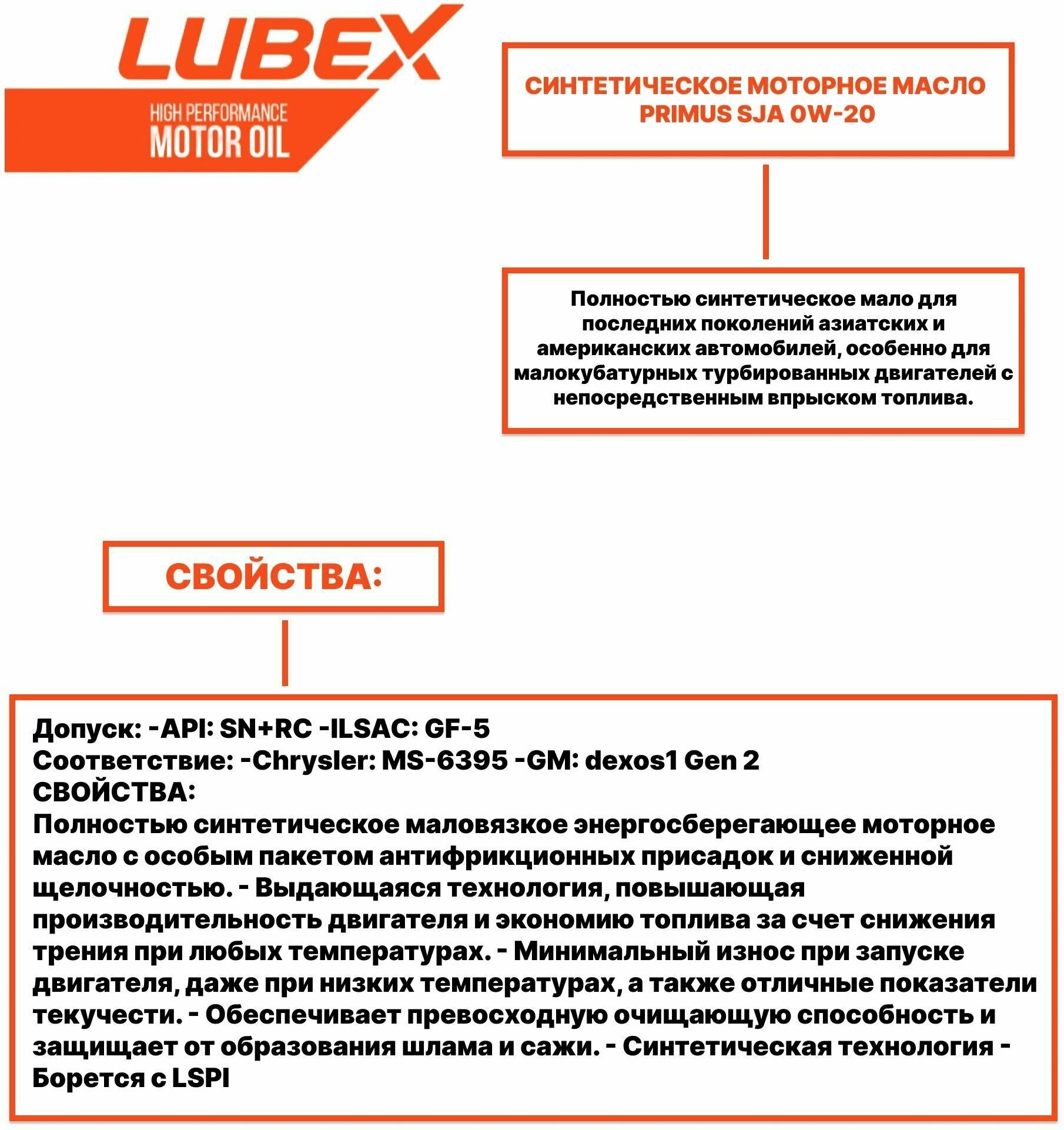 Synthetic Lubex Primus SJA 0W-20 SN+RC GF-5 4l