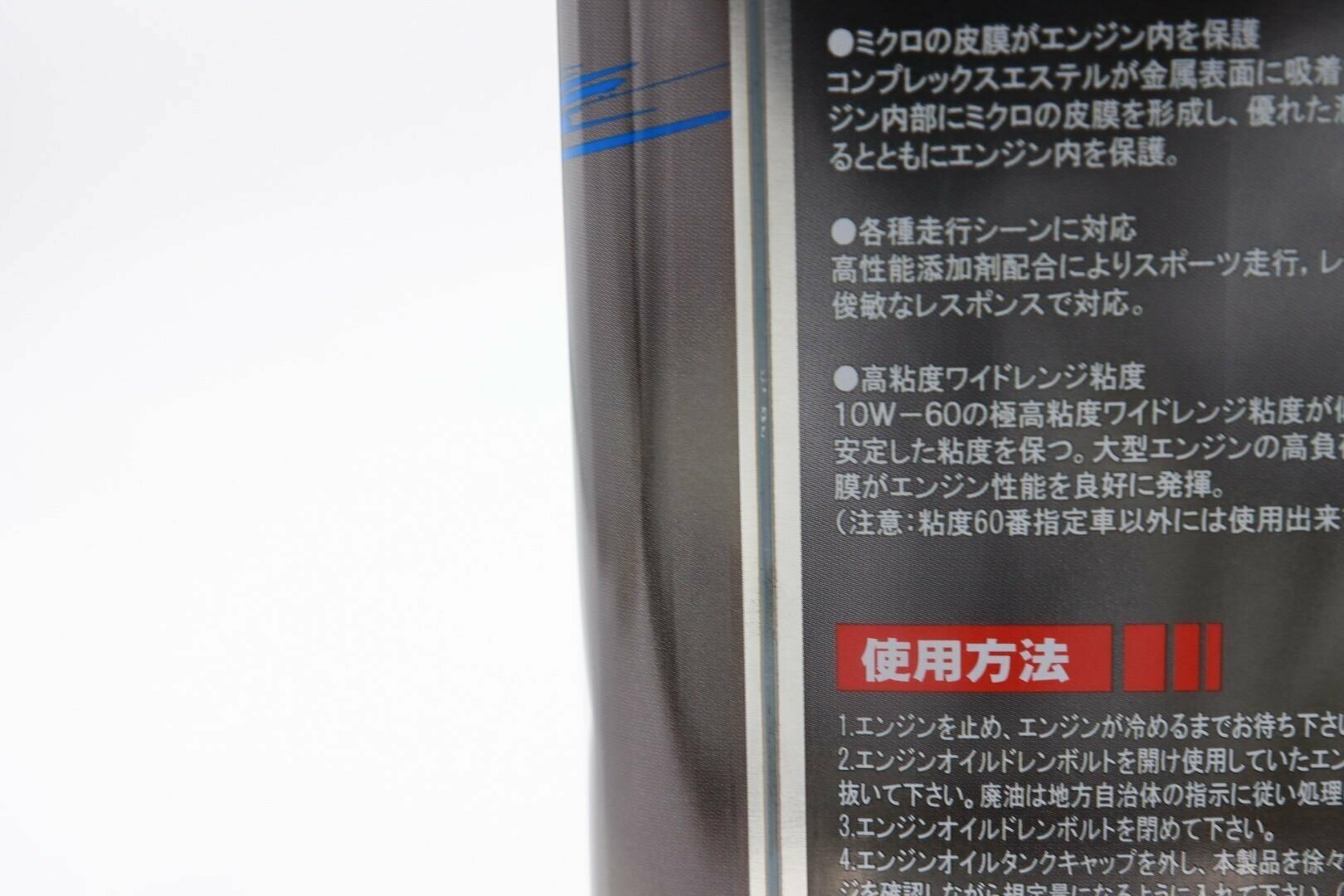 SAE viscosity grade: 10W-60, oil type: synthetic, fuel type: gasoline, API standard: SM