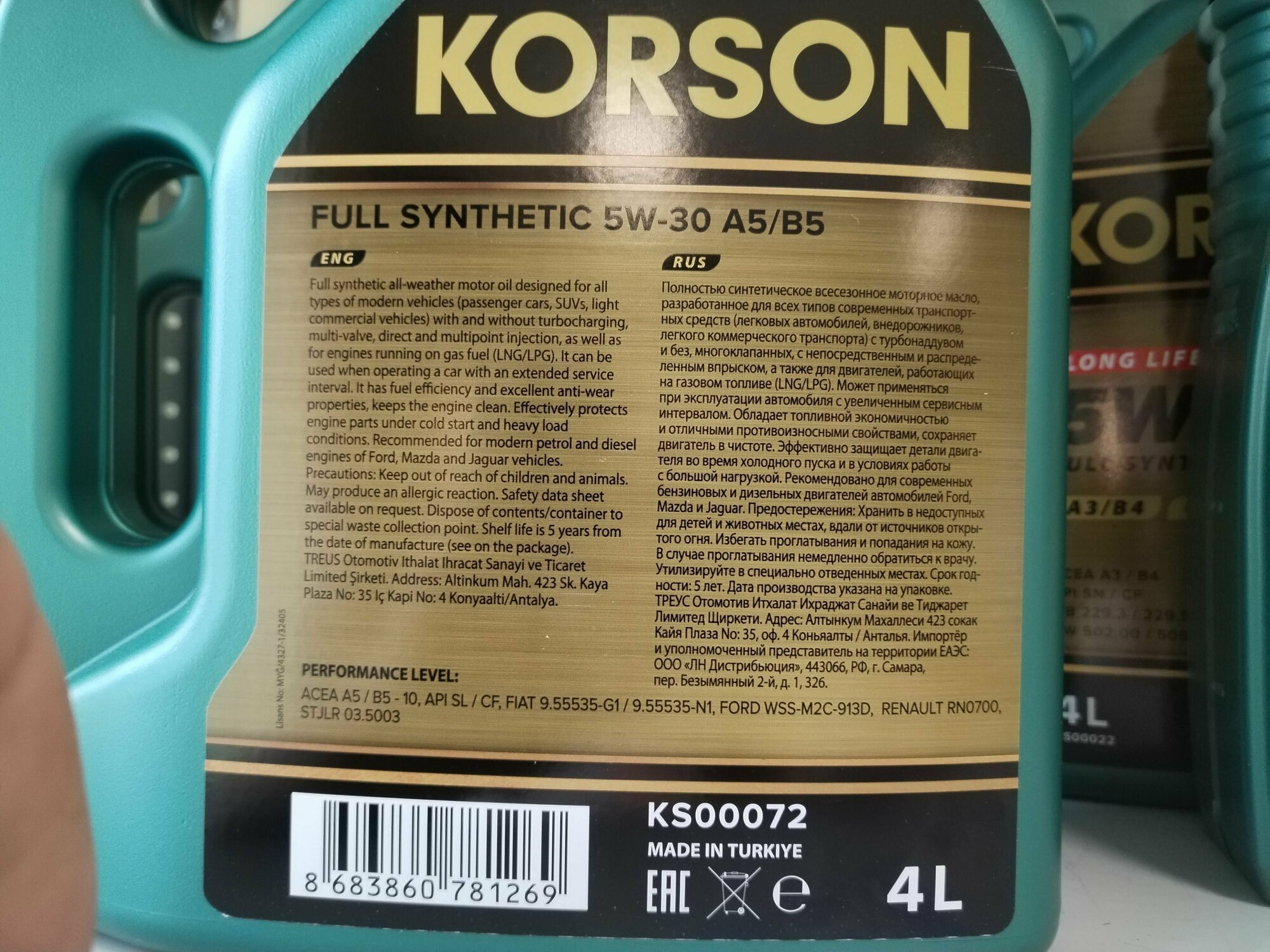 SAE viscosity grade: 5W-30, oil type: synthetic, fuel type: gasoline, diesel, Gas, API standard: CF, SN, ACEA standard: A5, B5, OEM approvals: FIAT 9.55535-G1, Ford WSS-M2C913-D , RENAULT RN0700, STJLR.03.5003, engine type: four-stroke