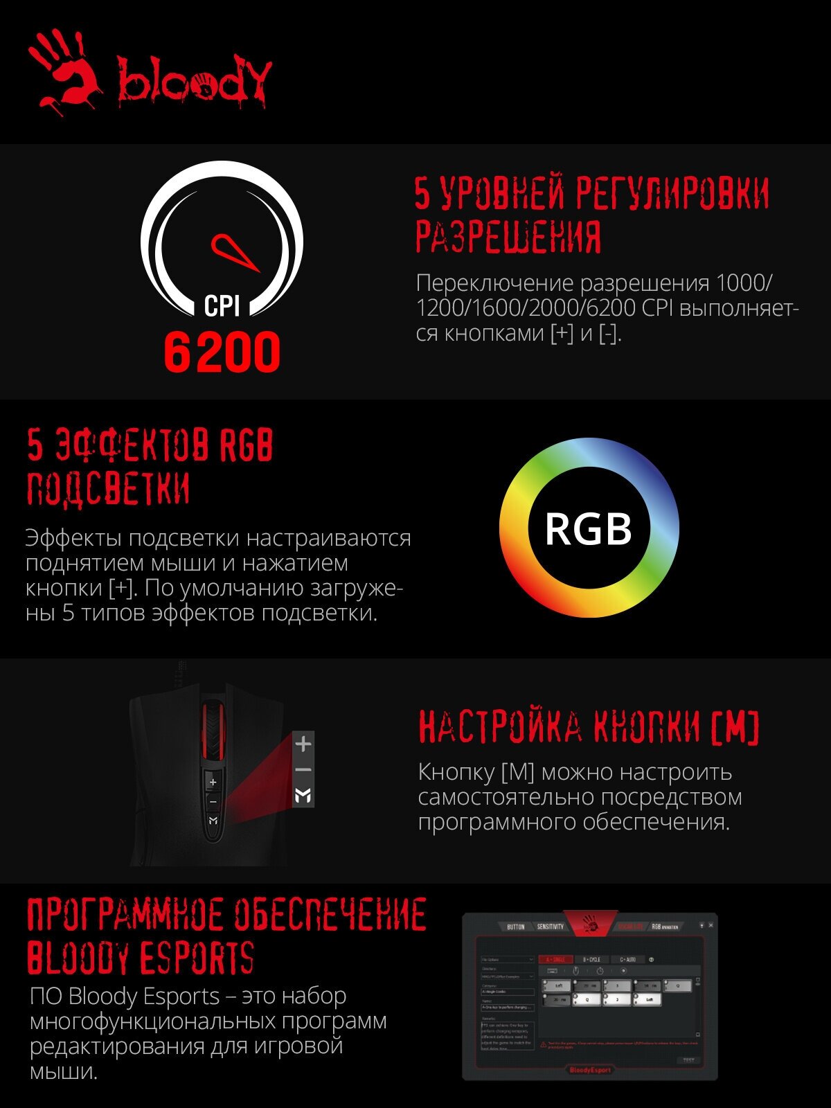 A4Tech Bloody ES9 black optical 6200dpi USB 7but