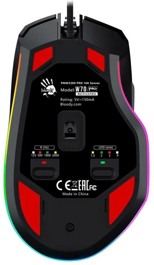 A4TECH, gaming, optical, wired, USB, 16000 dpi, 50 G acceleration, black