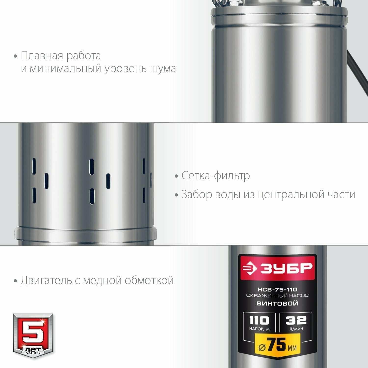 Well pump, screw ZUBR NSV-75-110 110 m head