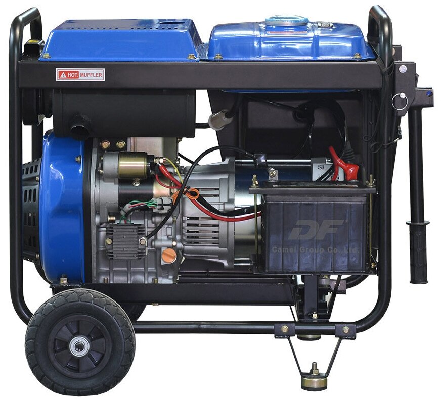 Type: diesel, rated power: 6500 W, maximum power: 7000 W, start: manual, electric, number of phases: 3, weight: 117 kg, cooling type: air, noise level: 84 dB, Number of sockets 220 V: 1