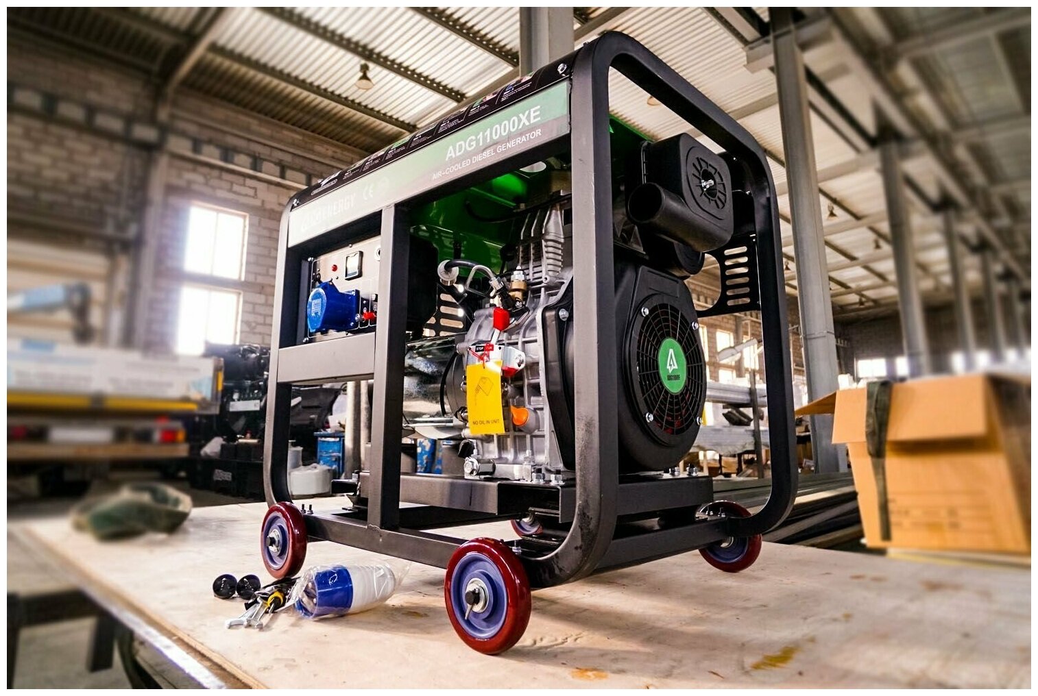 Wheels, Automatic shutdown when the oil level is insufficient, Battery included, Overload protection, Fuel level indicator, Hour meter, Electric starter