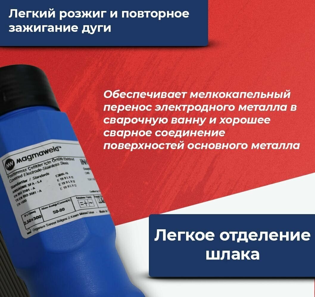 Electrodes for stainless steel stainless steel Magmaweld EI 308L grade E 308L-16, OK 61.30, OZL-8 2.5x300 mm, 2.5 kg