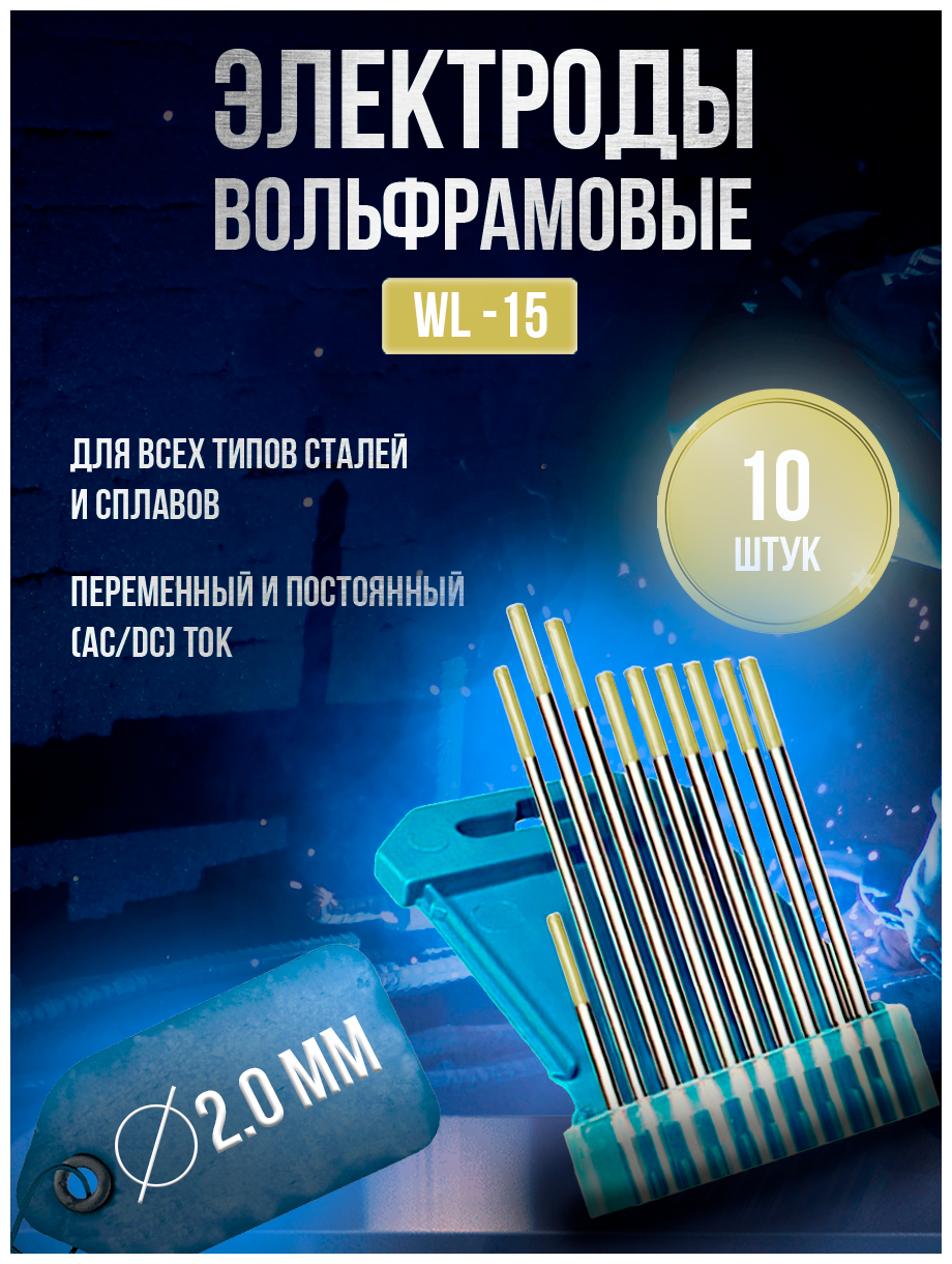 Electrode type: for argon arc welding, electrode material: tungsten, electrode length: 20 cm, welding mode: AC/DC, contact electrode shape: straight