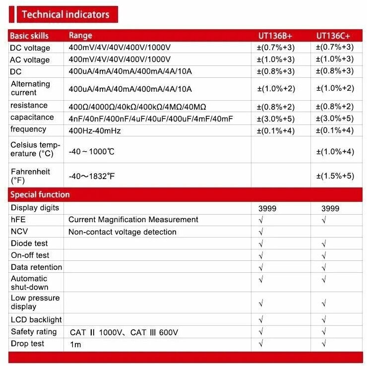 Multimeter Uni-T UT136C+, automatic, auto-off, display backlight