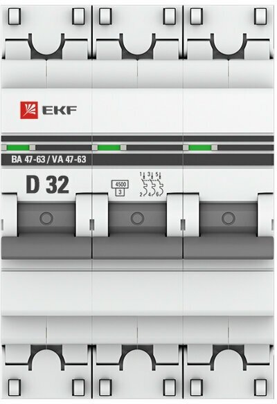 3P 32A characteristic D 4.5kA EKF BA47-63 PROxima
