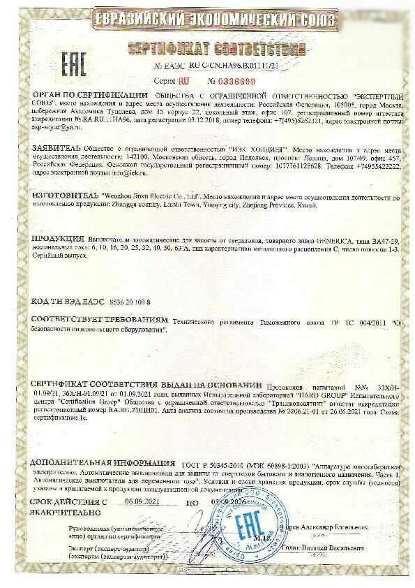 Automatic modular 2p C 25A 4.5kA VA47-29 GENERICA IEK MVA25-2-025-C 1 pc.
