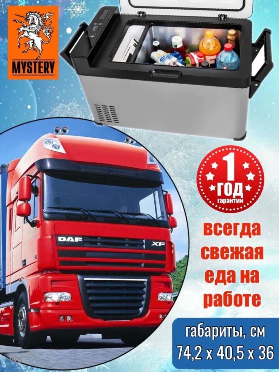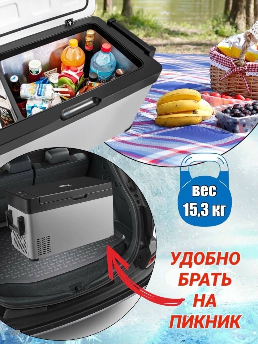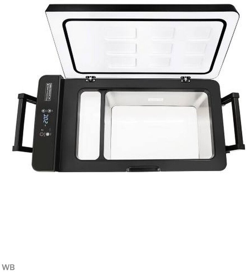 Operating principle: compressor, power: from the cigarette lighter, from the mains, voltage: 12 V, 220 V, 24 V, volume: 38 l, features: carrying handles, height: 74.20 cm, depth: 36 cm