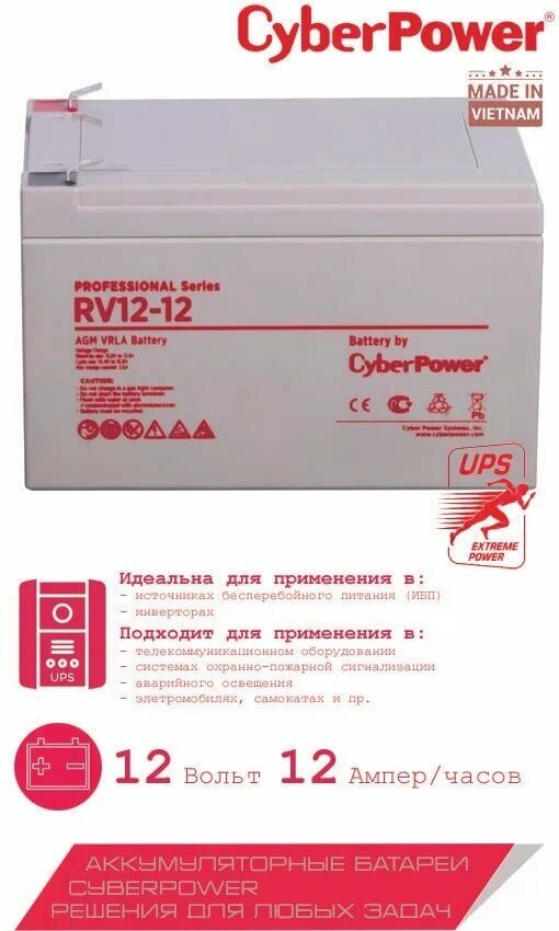 Battery for UPS backup power supply, etc. CyberPower RV 12-12 12A/h PROFESSIONAL SERIES
