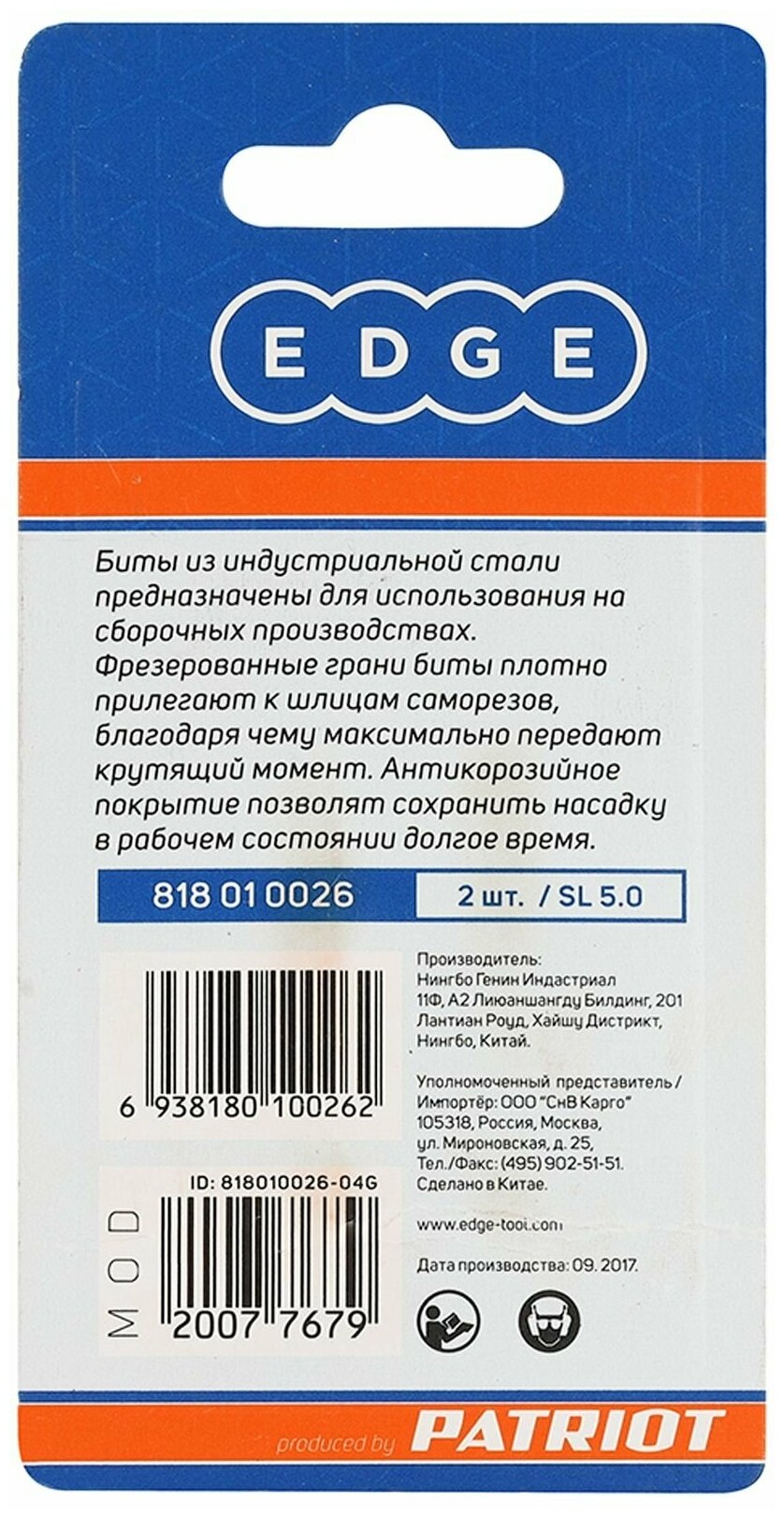 EDGE by PATRIOT SL5.5, steel S2, length 50 mm, 2 pcs.