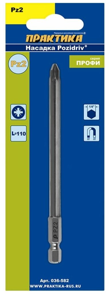 Type: bit, bit type: one-sided, tip type: PZ2, tip shape: cross, length: 110 mm