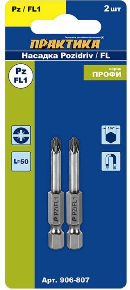 PRACTICE professional screwdriver bit PZ/FL1 50 mm 2pcs
