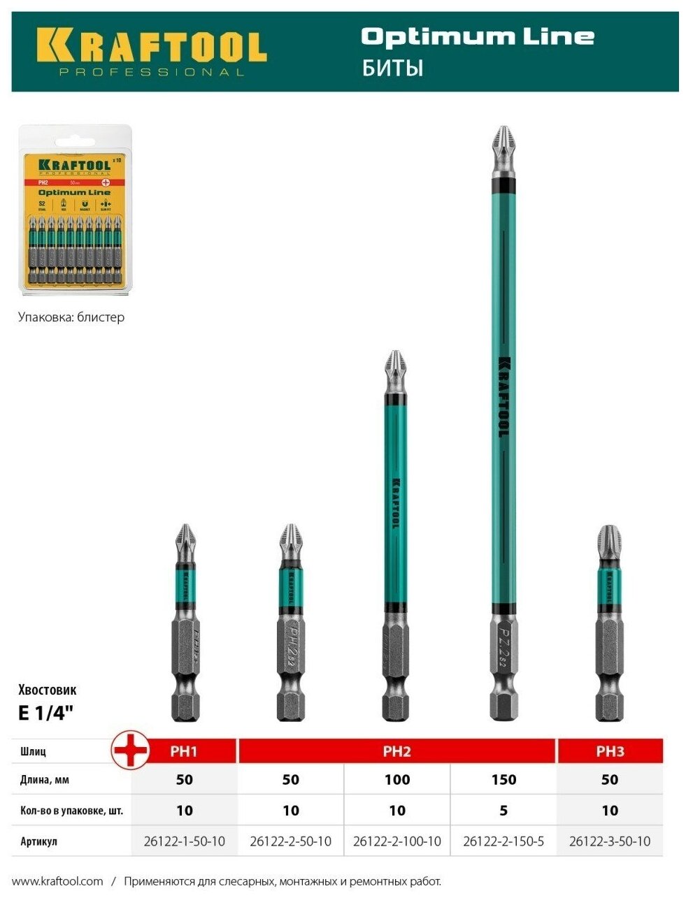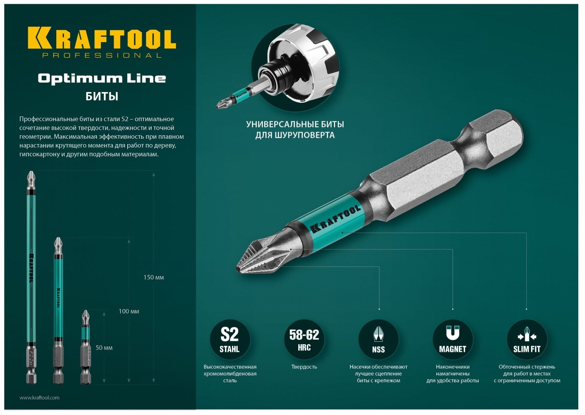 Bits KRAFTOOL Optimum Line PH2 150 mm 5 pcs. 26122-2-150-5