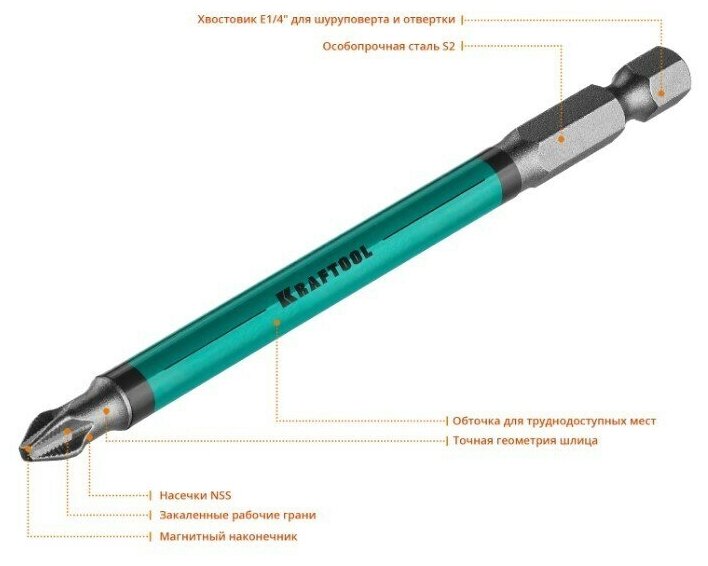 Type: bit, bit type: single-sided, tip type: PH2, tip shape: slotted, length: 150 mm