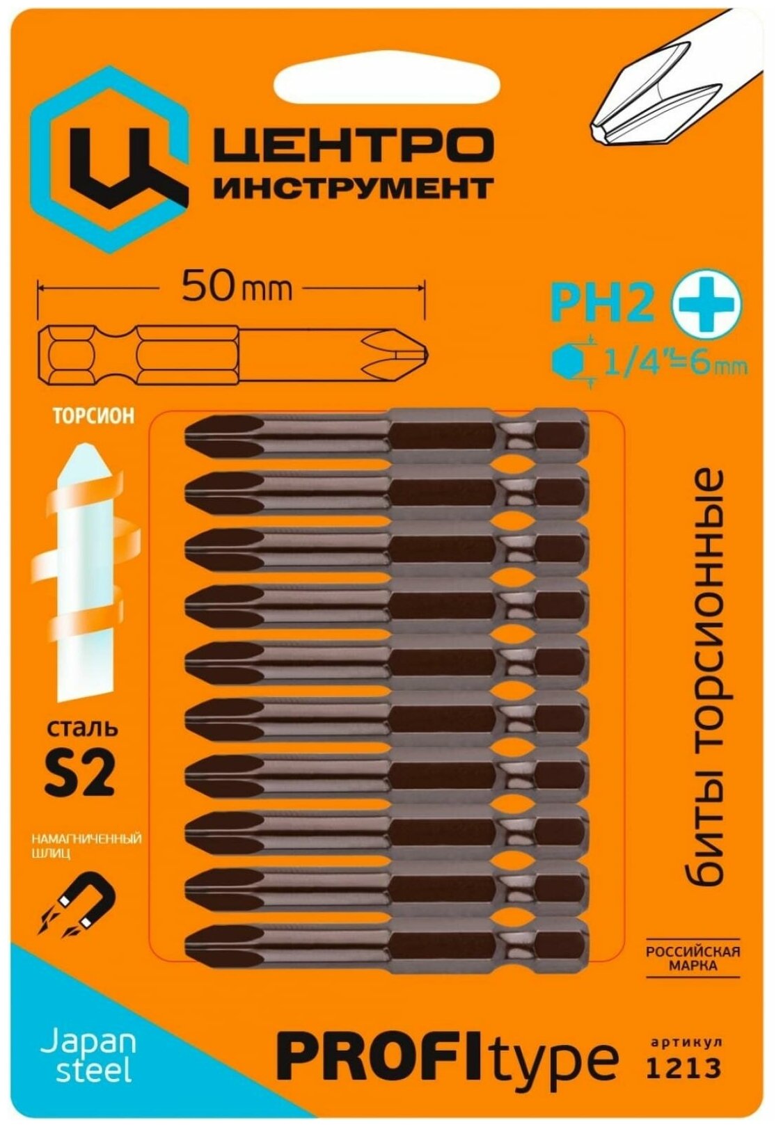 Type: bit, bit type: single-sided, tip type: PH2, length: 50 mm