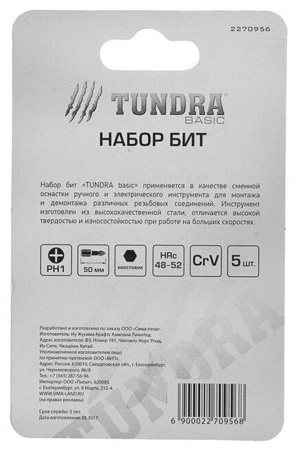 TUNDRA bits, magnetized, CrV steel, PH1 x 50 mm, 5 pcs.