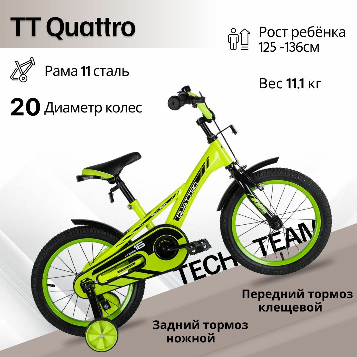 Tech Team Quattro 20 neon green steel
