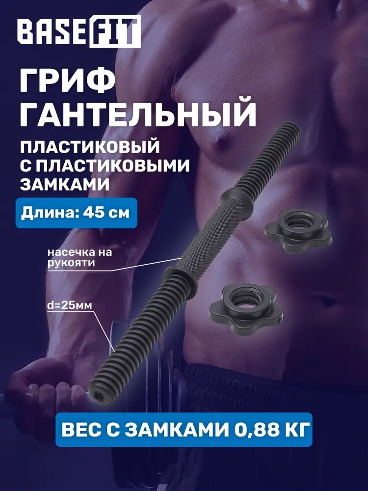 Dumbbell bar BASEFIT BB-106 d=25 mm, plastic, with plastic locks, 45 cm
