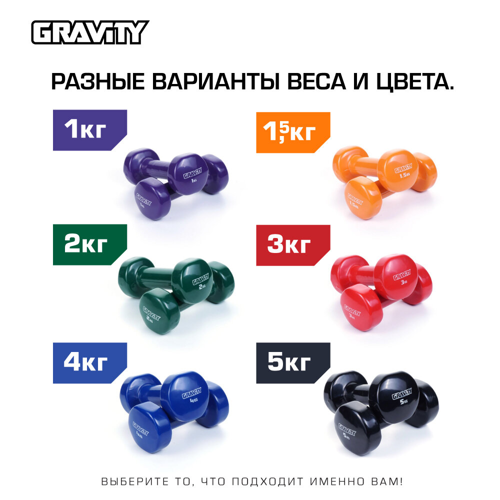 Gravity Vinyl Dumbbells, Purple, 1kg, Pair