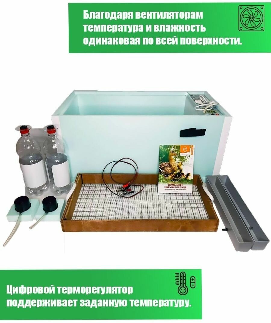 Type: incubator, turning: automatic, type of eggs: turkey, chicken, duck, features: automatic switching to emergency power