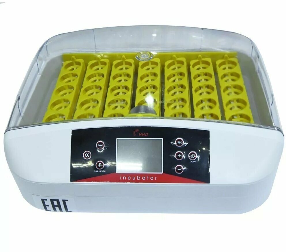 The incubator is made of durable, high-quality plastic and can hold up to 42 chicken eggs. The transparent top allows you to monitor the progress of incubation, and the built-in backlight will help you identify defects and assess the quality of the eggs.