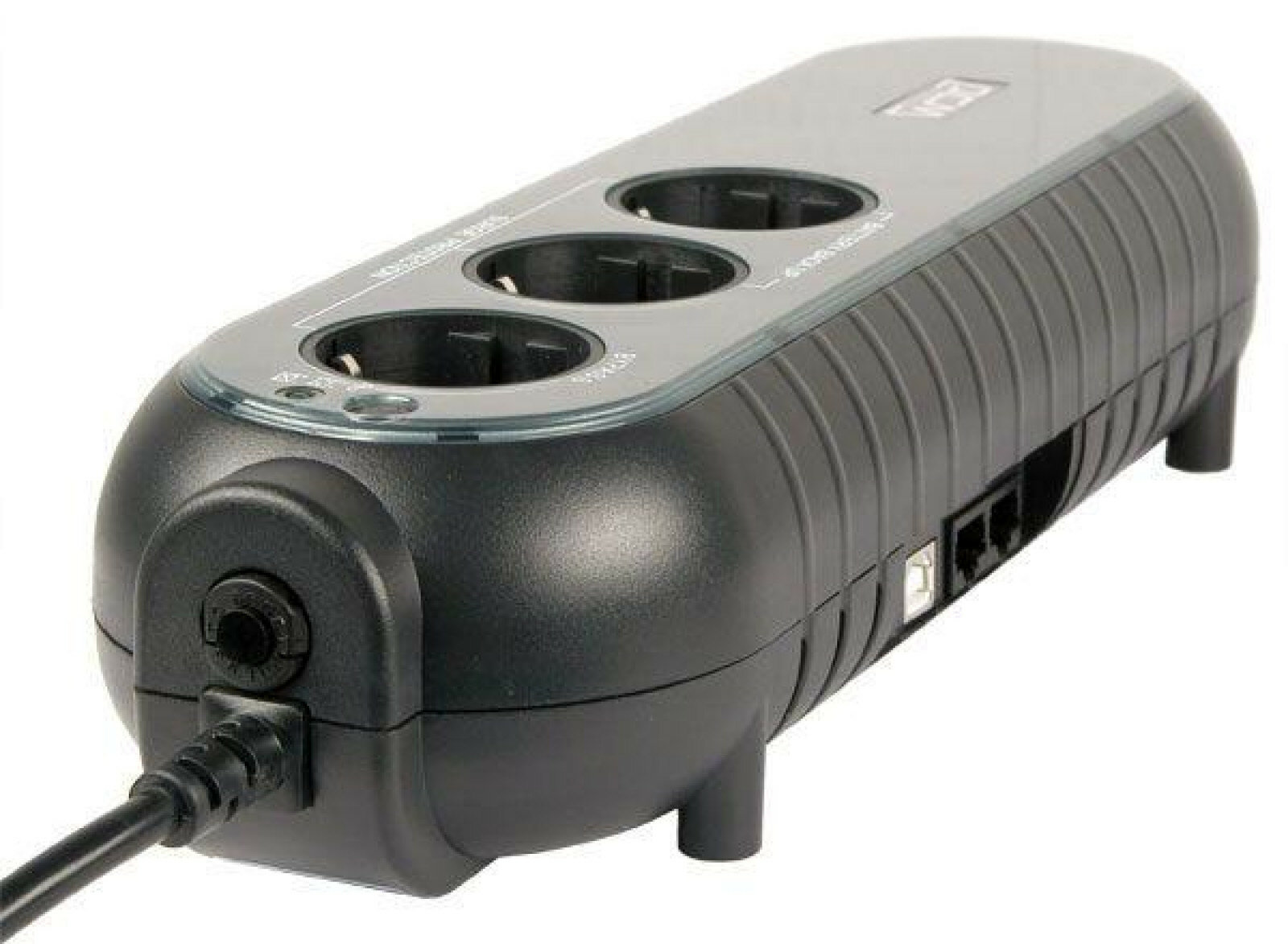 Output connectors: 3xEURO: 2 with backup power, 1 with filtering; UPS overload protection: in mains mode, if the overload exceeds 120% of the nominal value, a continuous sound signal is emitted; backup mode: av