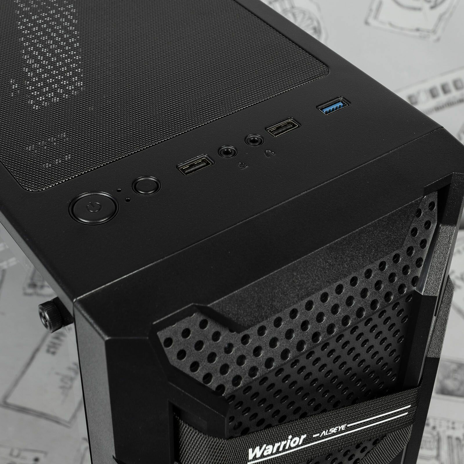Power supply at the bottom, horizontal arrangement