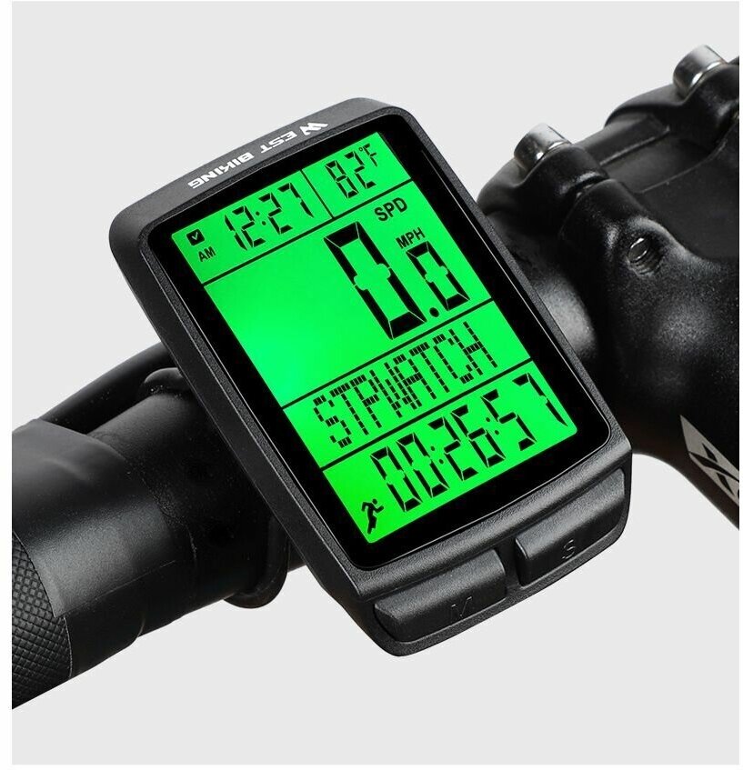 Training time, maximum speed, odometer, stopwatch, average speed, calorie counter, thermometer, clock