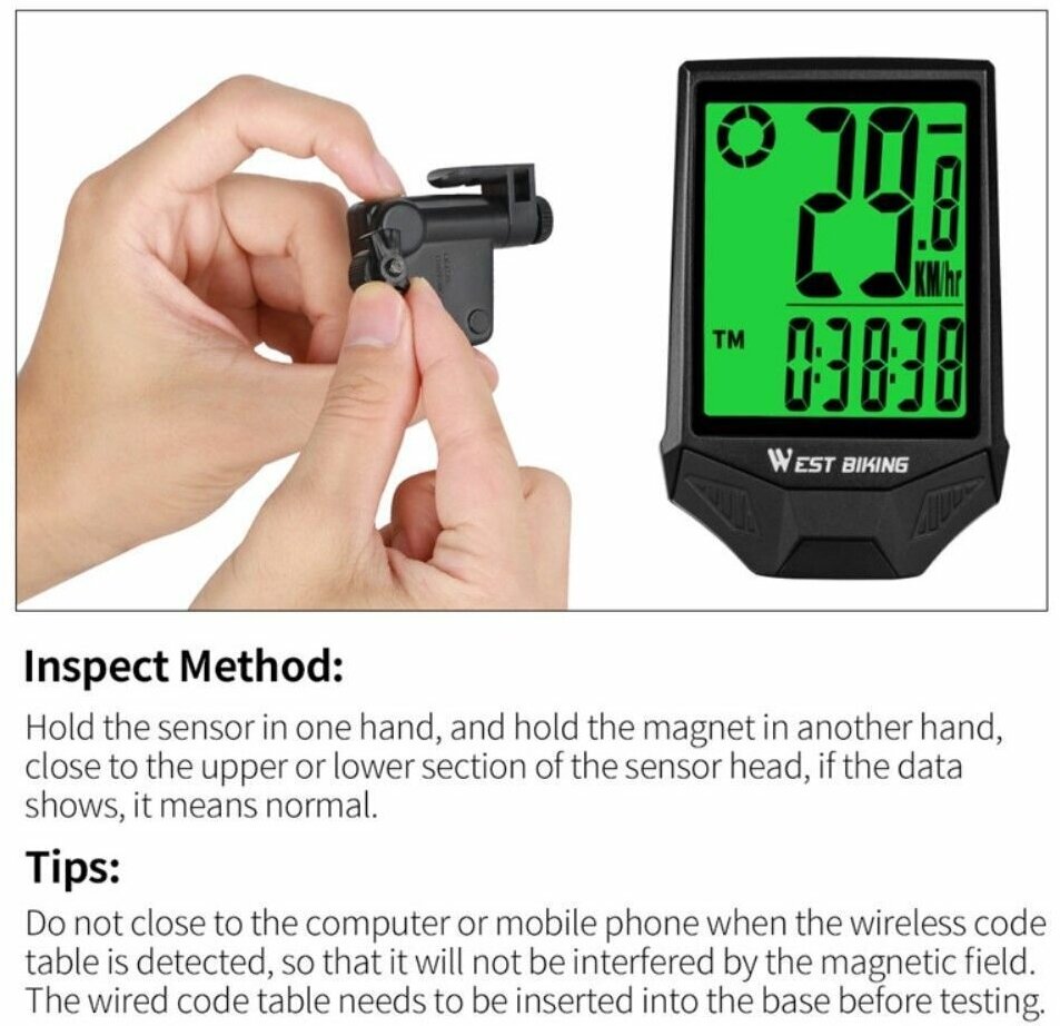 Type: cycling computer, cycling computer type: wireless, mount: handlebar, functions: training time, maximum speed, odometer, stopwatch, average speed, calorie counter, thermometer, clock, features: backlight
