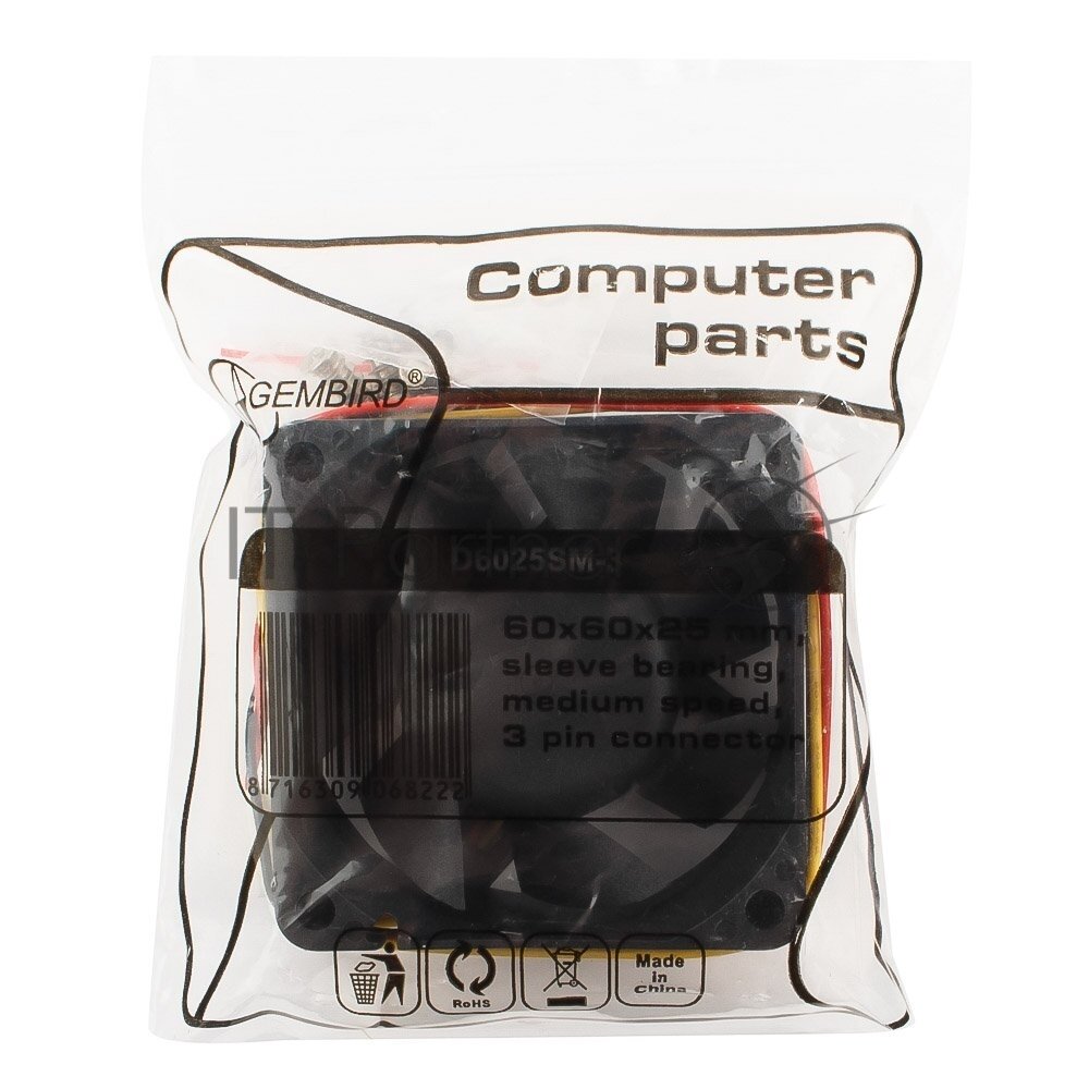 Fan Gembird, 60x60x25, sleeve, 3 pin, wire 25 cm 7778