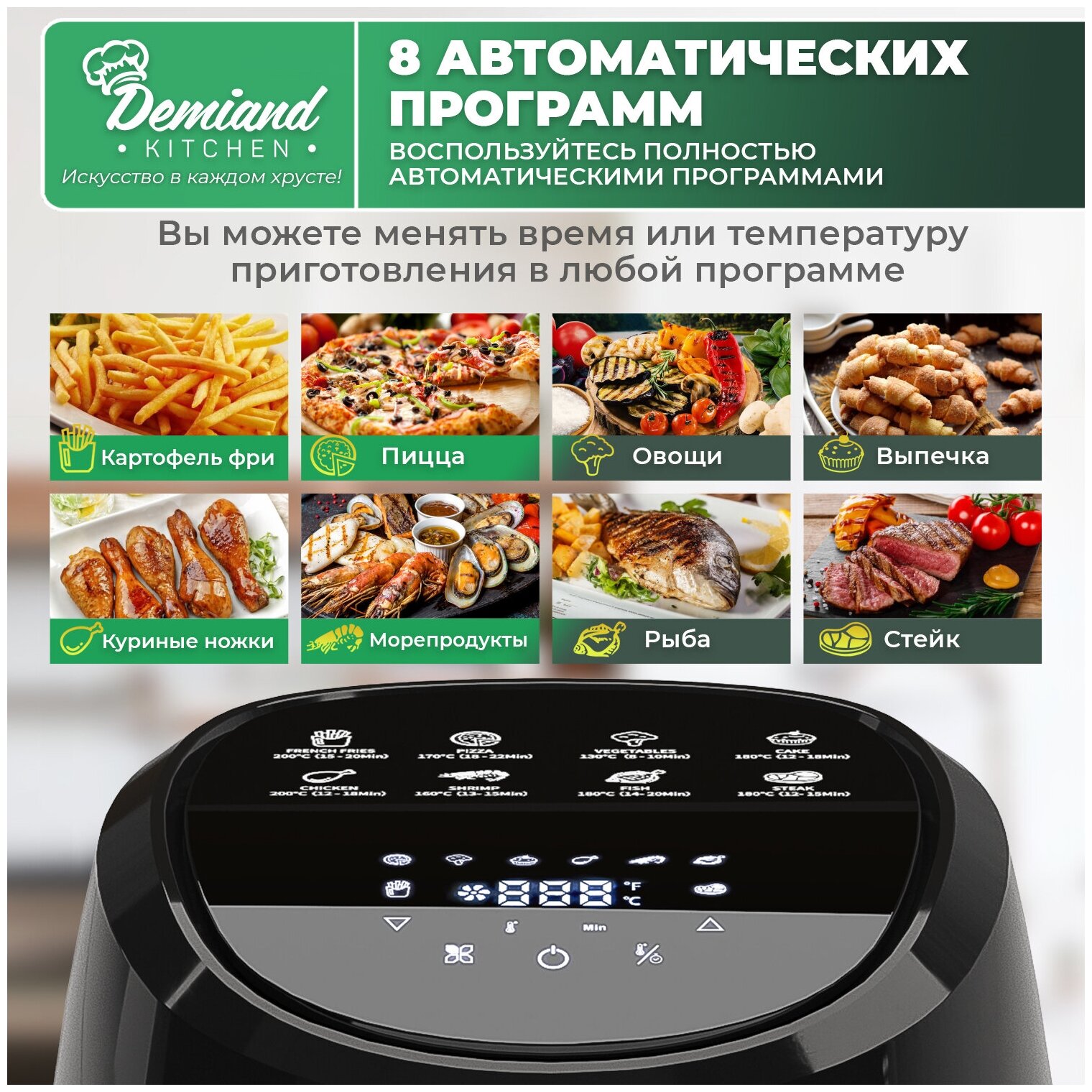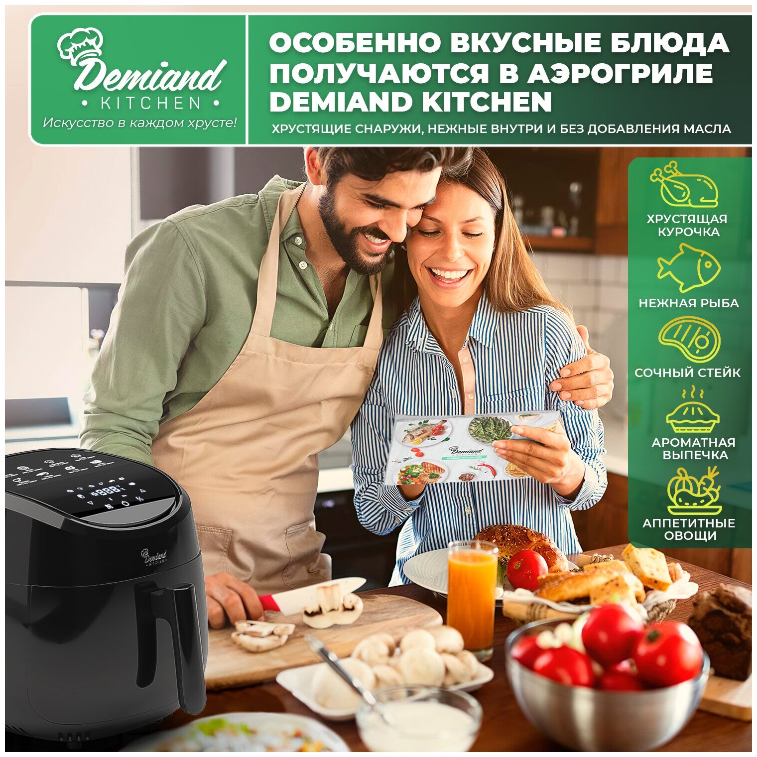 DEMIAND, with fryer, grill, oven, toaster, mini-oven functions, removable grid, basket, 8 programs, recipe book, 4.5l, 1400W