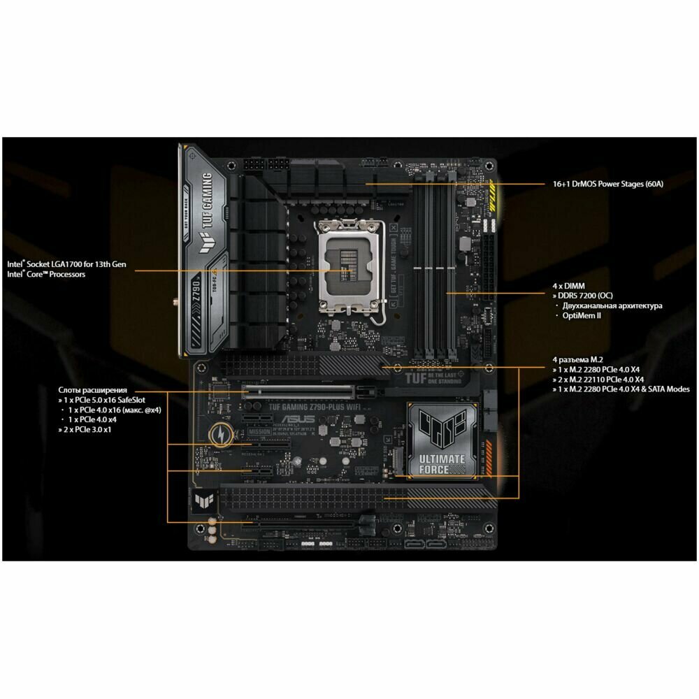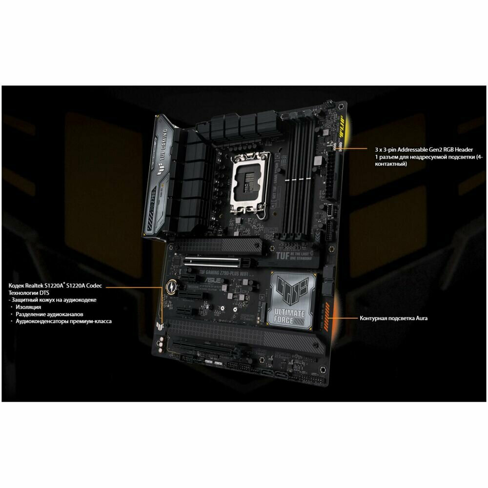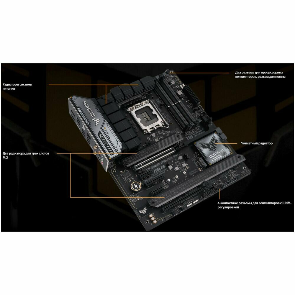 COM port, processor power supply 8-pin + 8-pin, PCI-E 3.0 support, PCI-E 4.0 support, PCI-E 5.0 support, TPM module connector, RGB strip connector, 24-pin power connector