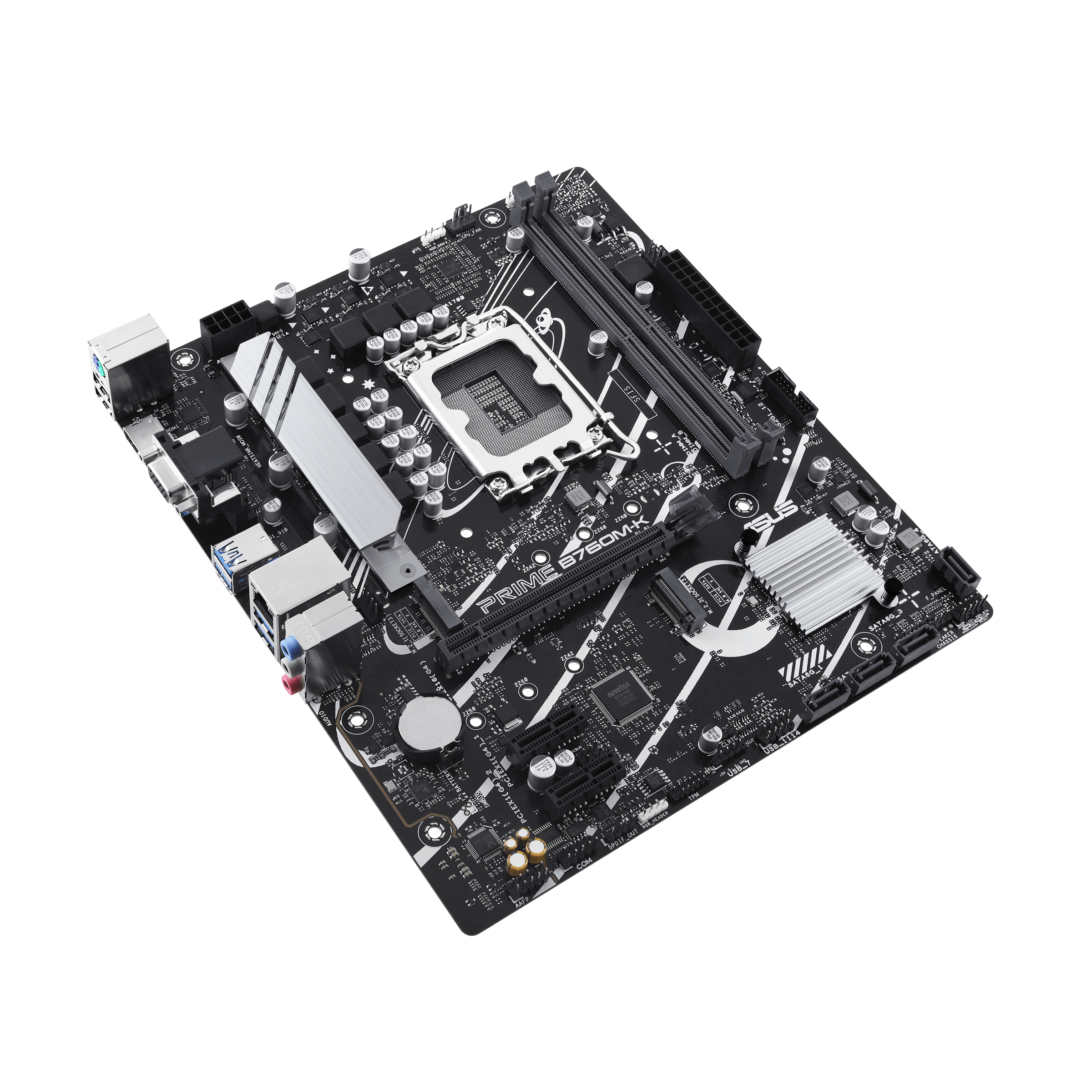 Socket: LGA1700, chipset name: Intel B760, form factor: microATX, processor manufacturer: Intel, memory type: DDR5 DIMM, number of memory slots: 2, number of M.2 slots: 2, number of PCI-E x16 slots: 1, Number of PCI-E x1 slots: 2, wireless
