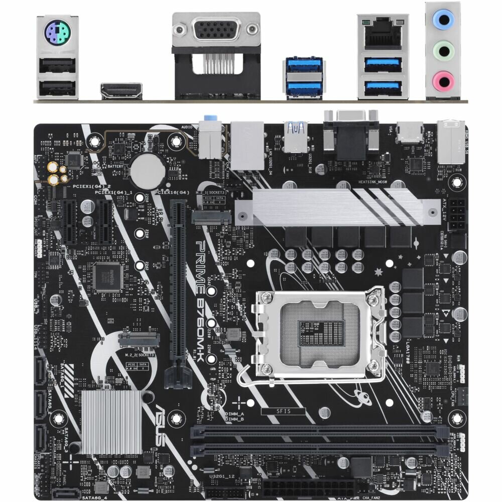 2 x USB 2.0 Type-A, 4 x USB 3.2 Gen1 Type-A, DisplayPort, HDMI, LAN RJ-45, PS/2 keyboard, PS/2 keyboard/mouse, PS/2 mouse, VGA