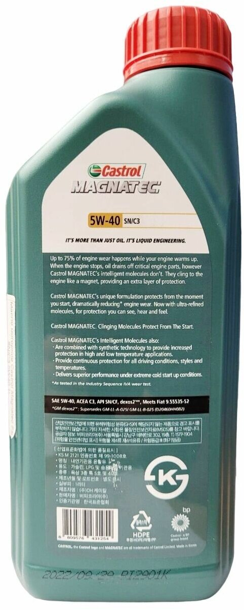 SAE viscosity grade: 5W-40, oil type: synthetic, fuel type: gasoline, diesel, API standard: CF, SN, ACEA standard: C3, OEM approvals: FIAT 9.55535-S2, GM Dexos 2, GM-LL-A- 025, GM-LL-B-025, engine type: four-stroke