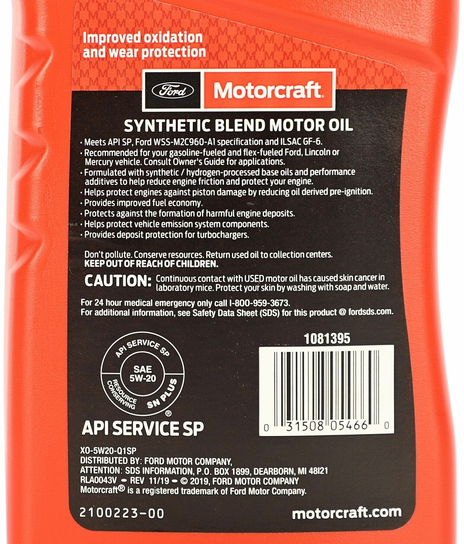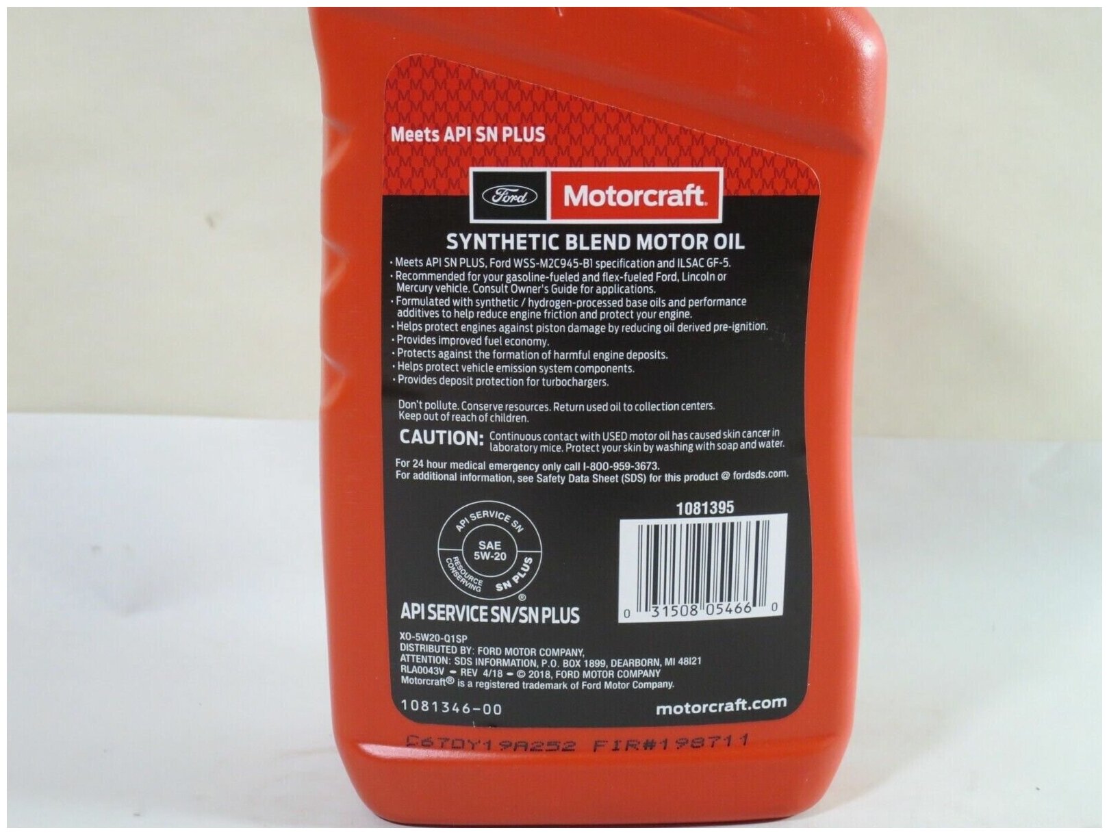 SAE viscosity grade: 5W-20, oil type: semi-synthetic, synthetic, fuel type: gasoline, API standard: CF-4, GF-5