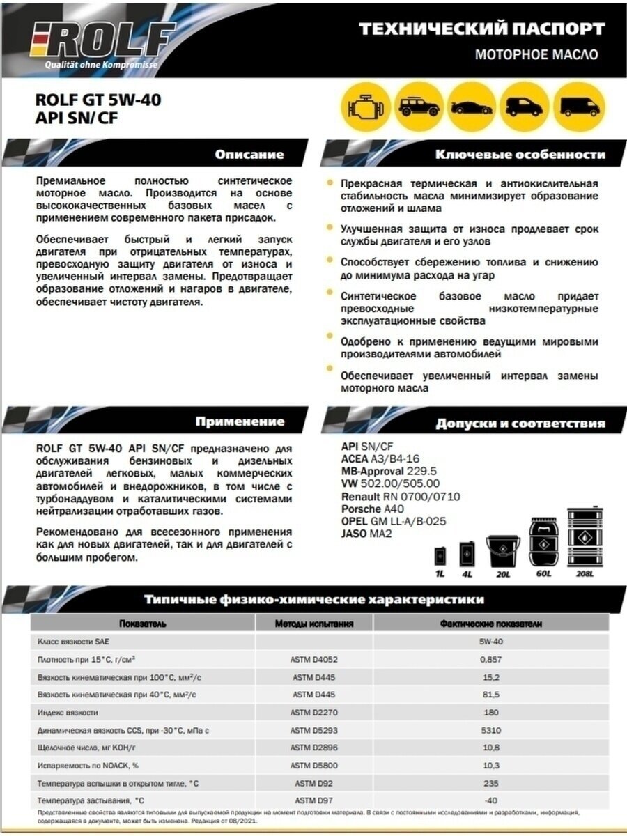 Rolf GT SAE 5W40 API SN/CF 4l synthetic