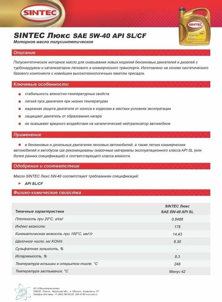 SINTEC Luxury SAE 5000 5W30 API SL/CF 4l