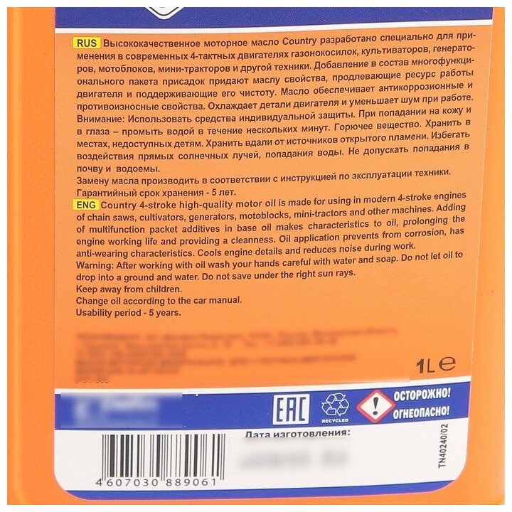 Four-stroke oil Country mineral SAE 30 SG/CD, 1 l