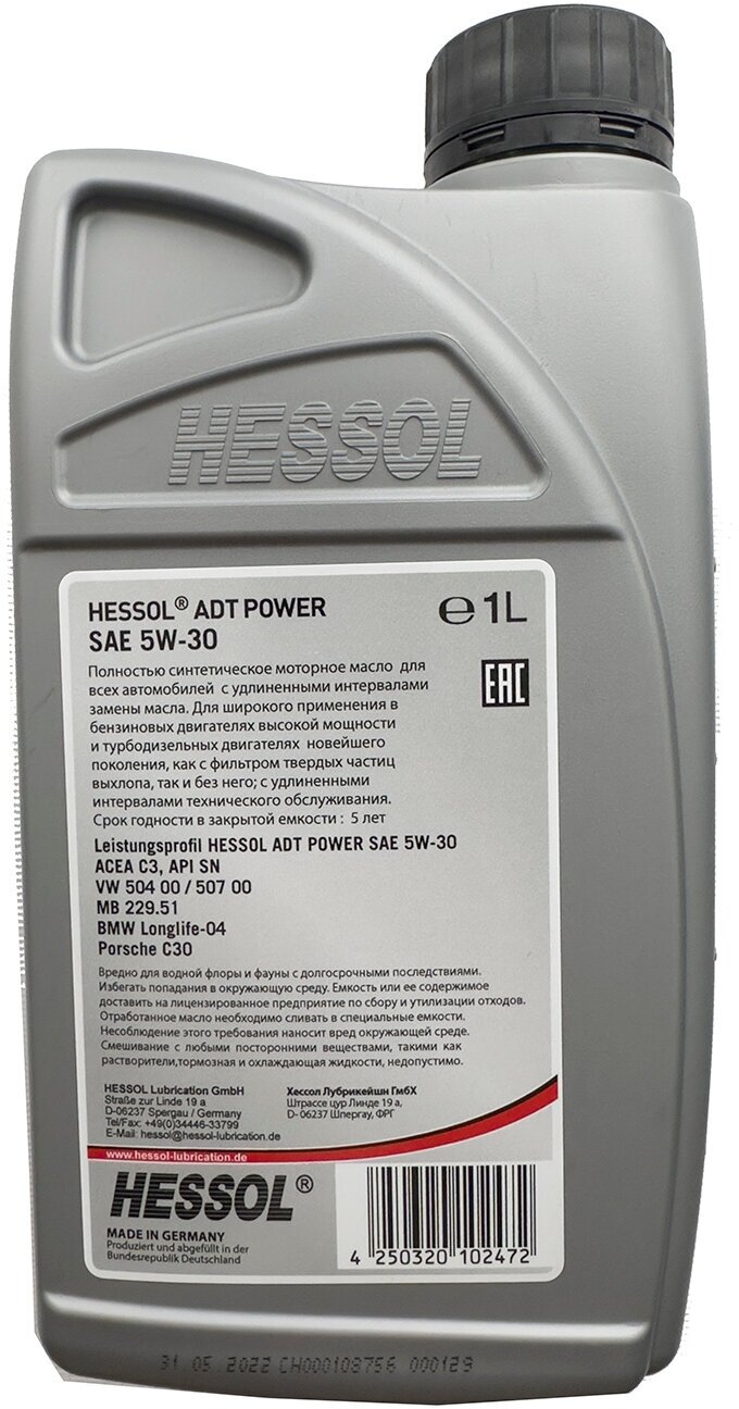 SAE viscosity grade: 5W-30, oil type: synthetic, fuel type: gasoline, diesel, API standard: SP, ACEA standard: C3, OEM approvals: PORSCHE C30