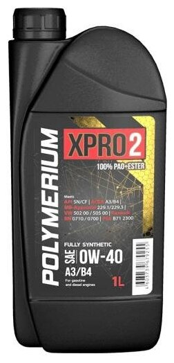 Synthetic POLYMERIUM XPRO2 0W-40 A3/B4, all-season