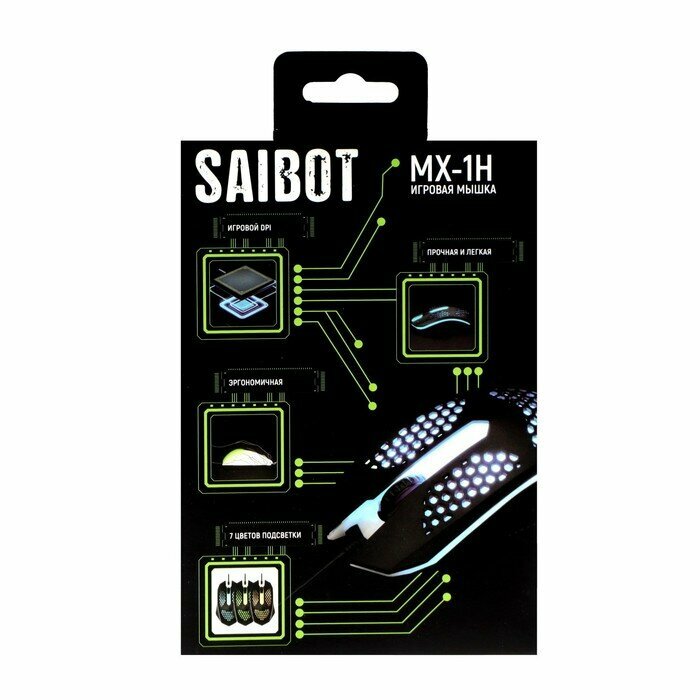 Saibot MX-1H, gaming, wired, 1200 dpi, USB, backlit, black