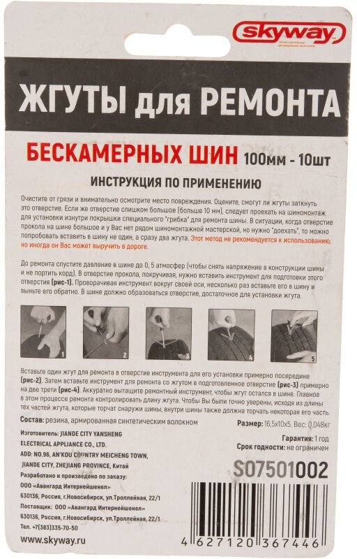 Cord rubber harness repair of used tires without installation 6*100mm brown. 10 pieces. SKYWAY