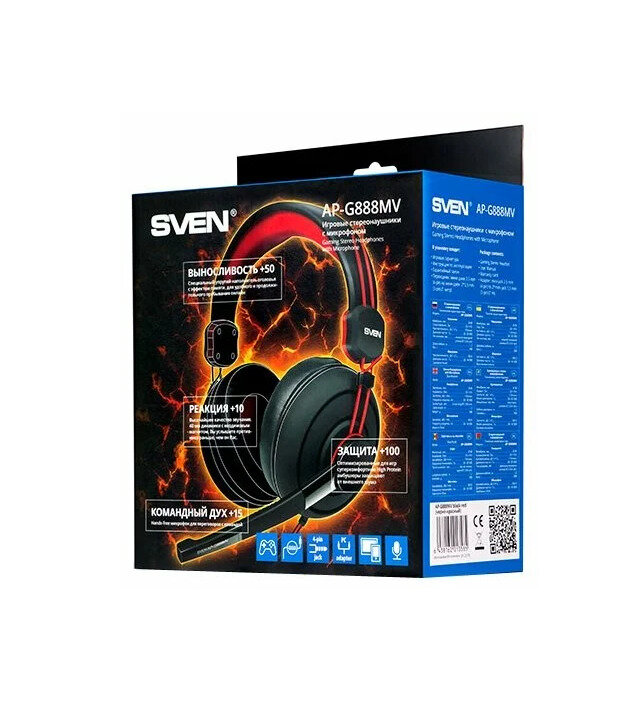 Wired headphones with microphone Sven AP-G888MV black-red, cable 1.2 m, monitor, headband mount 1637451
