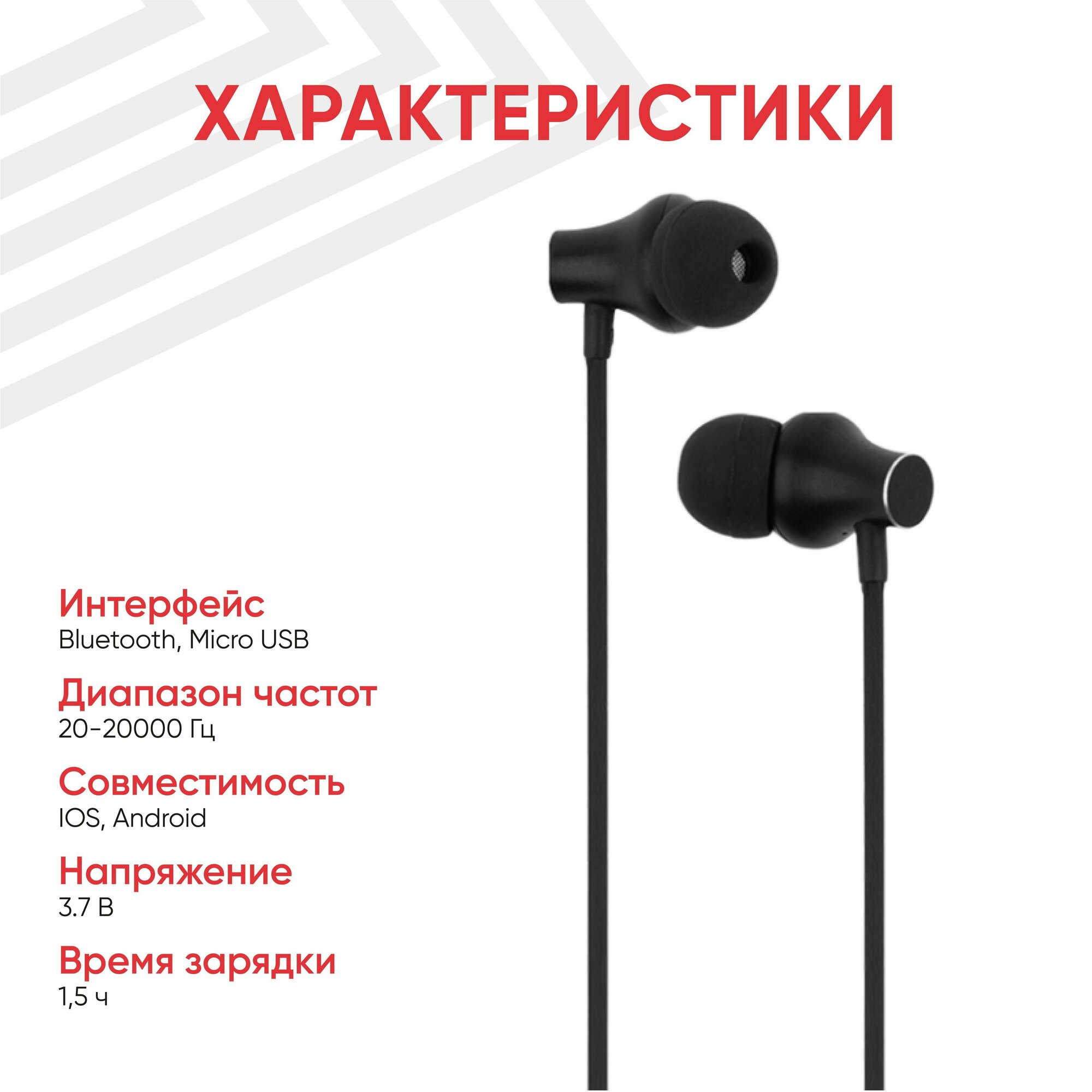 Design: in-ear, device type: wireless headphones, ANC active noise reduction system, design features: microphone, plug connector: microUSB, acoustic design type: closed, functions: p