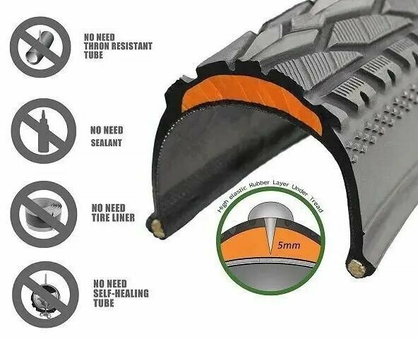 Type: tire, tread type: slick, valve: Dunlop, features: puncture protection, directional tread, cord material: steel