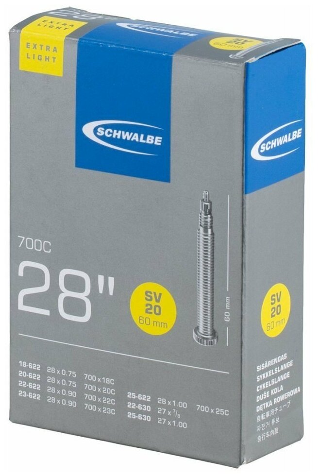 Bicycle tube Schwalbe SV20 50mm, 28700C/27x0.7-1.00, 18/25-622/630, Presta 50mm, Extra Light, 10400103