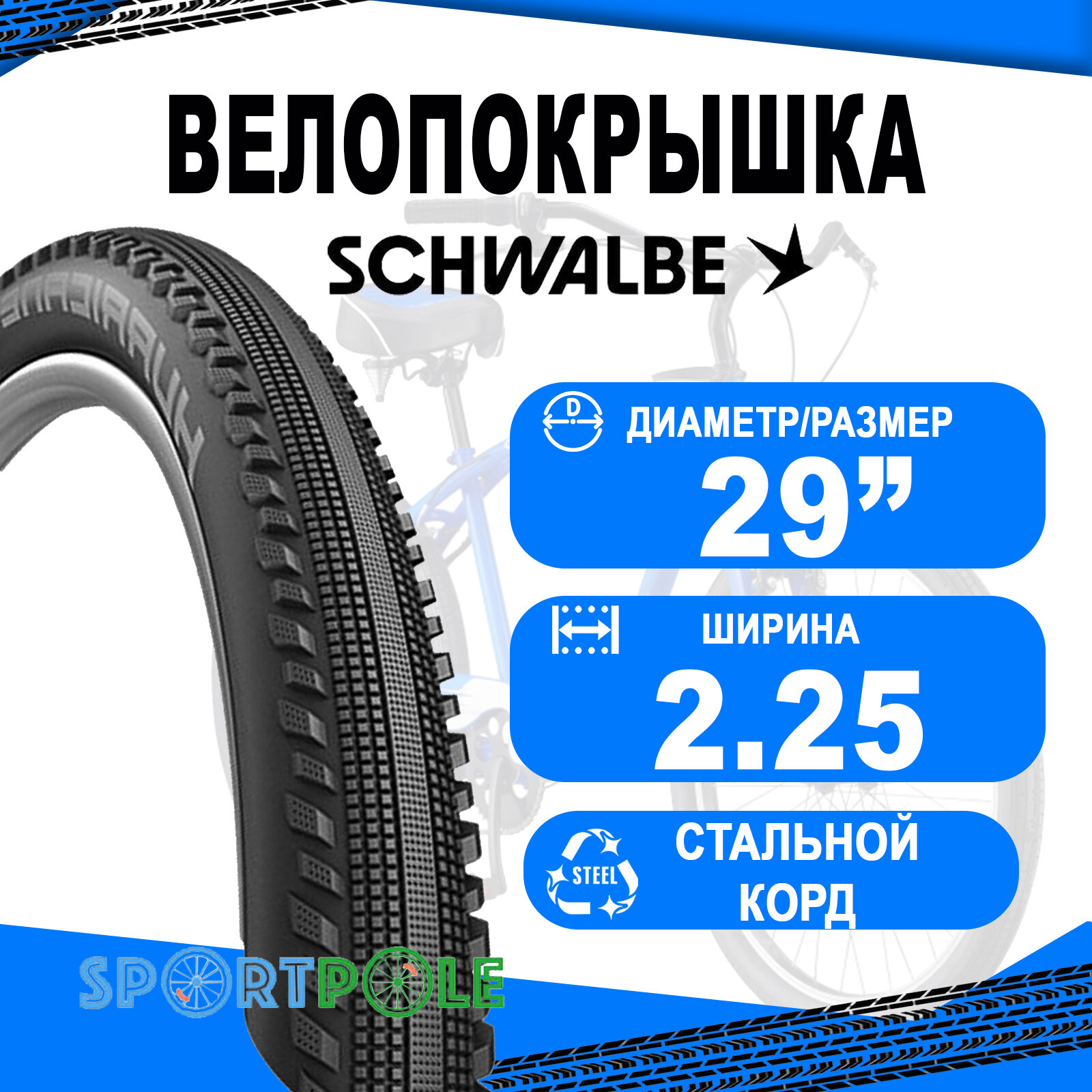 Type: tire, tread type: semi-slick, features: studded, cord material: steel